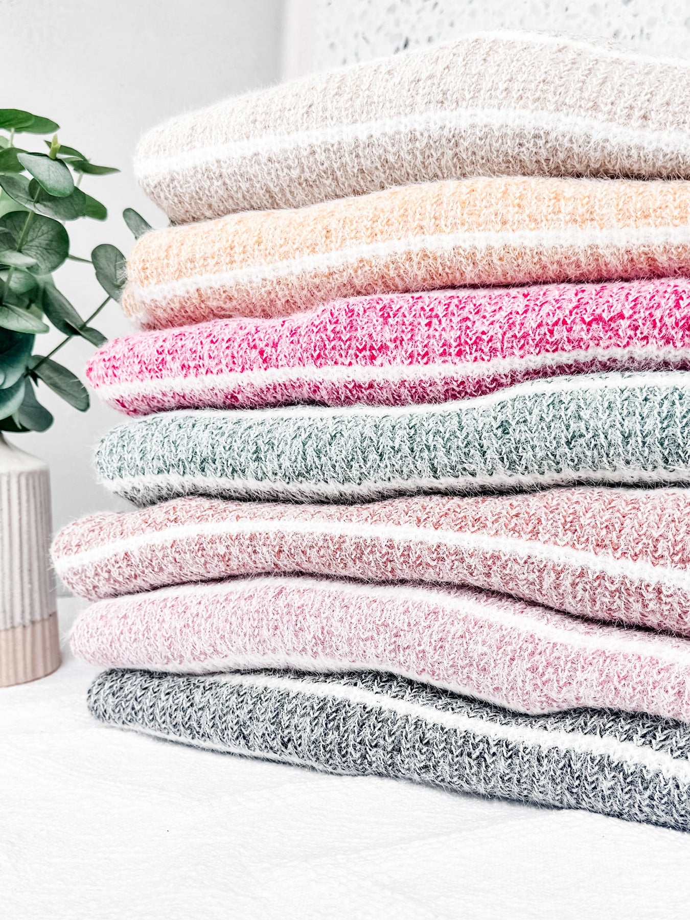 Stay cozy and stylish in our Cozy Striped Sweater. Made with super soft material, this v-neck sweater is slightly oversized for a comfortable and effortless fit. Perfect to complete your fall look, it's a must-have for the season.