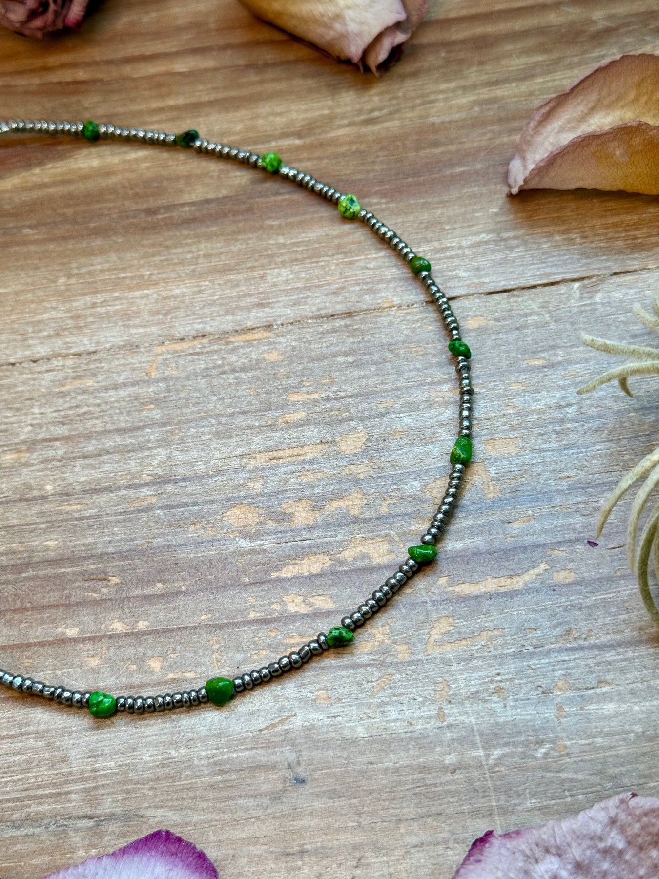 Green Turquoise Glass Seed Bead Necklace – 14 Inch
